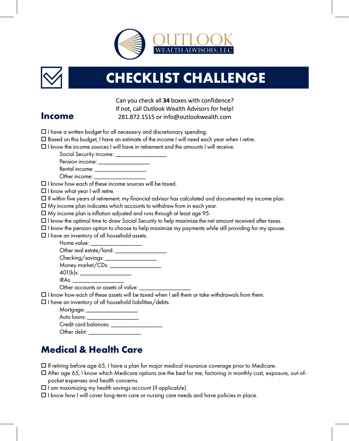 checklist, retirement checklist, retirement planning, wealth management, wealth planning, retirement